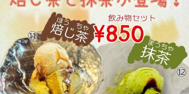わらび餅アイス添えセットに焙じ茶味と抹茶味が期間限定で登場しました!お好みの飲み物と一緒にお楽しみください。 ...